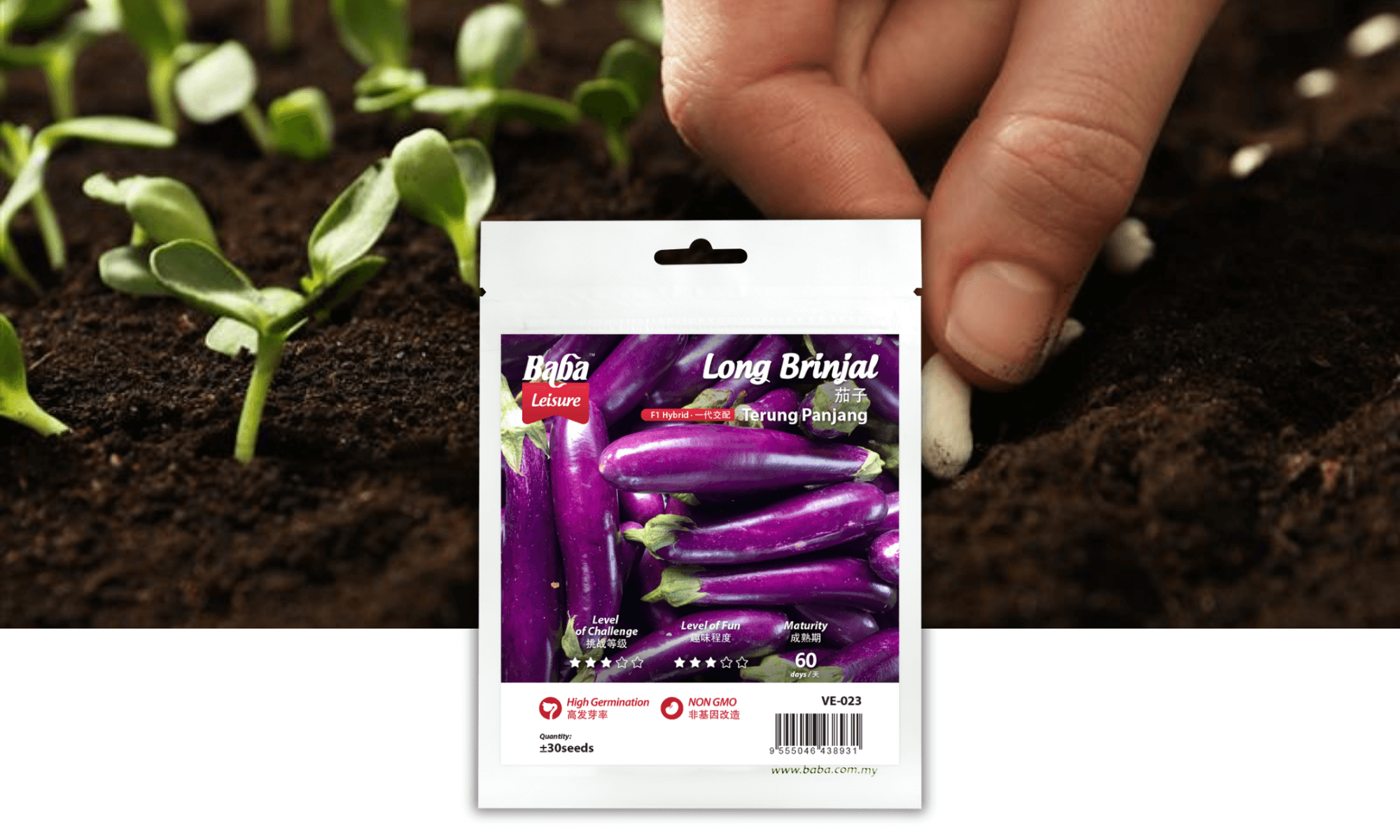♥♥ Extra tips: Long Brinjal need more nutrient to fruiting, you may add in 25% Baba Compost-Based Fertilizer into soil. Baba Compost-Based Fertilizer help the plant to grow stronger.