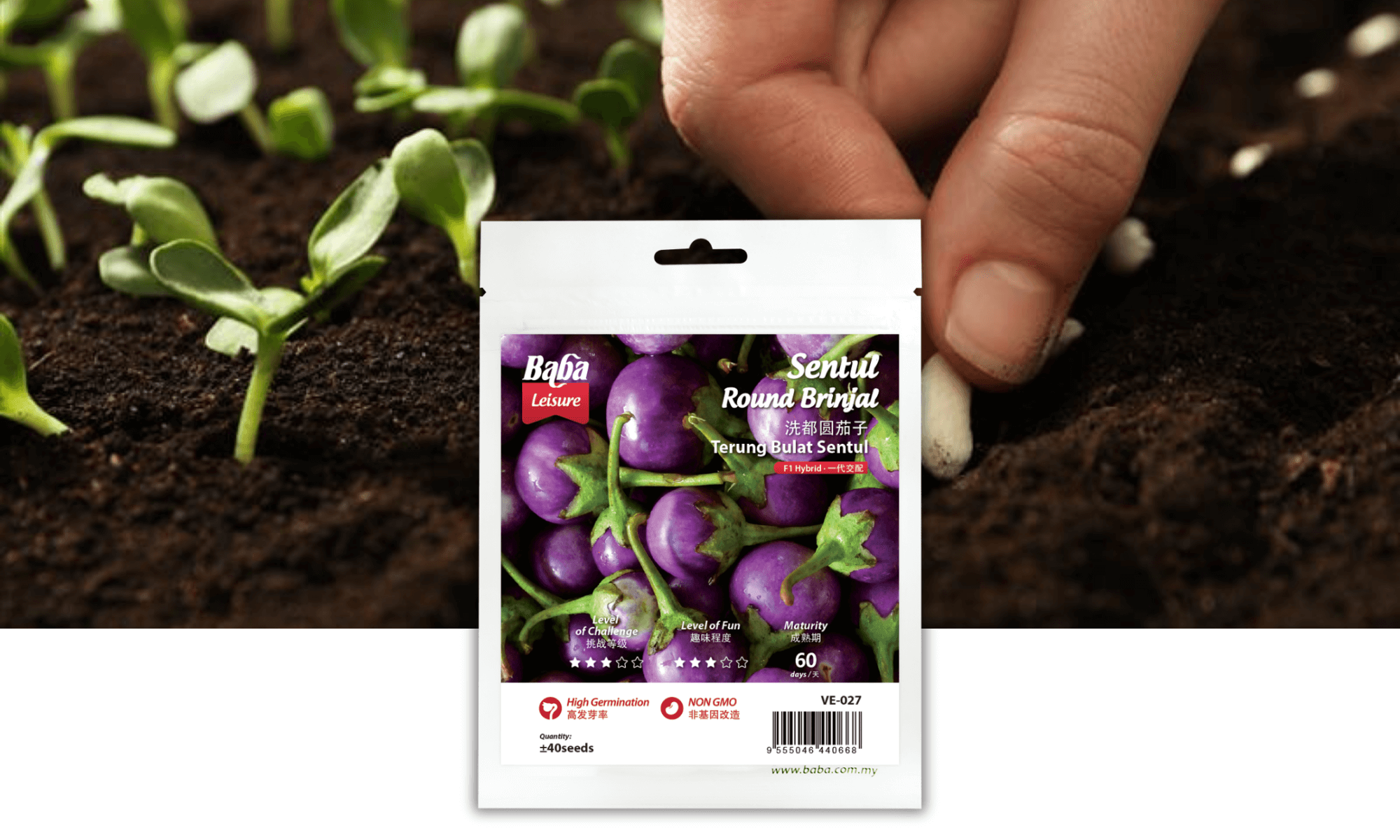 ♥♥ Extra tips: Sentul Round Brinjal need more nutrient to fruiting, you may add in 25% Baba Compost-Based Fertilizer into soil. Baba Compost-Based Fertilizer help the plant to grow stronger.