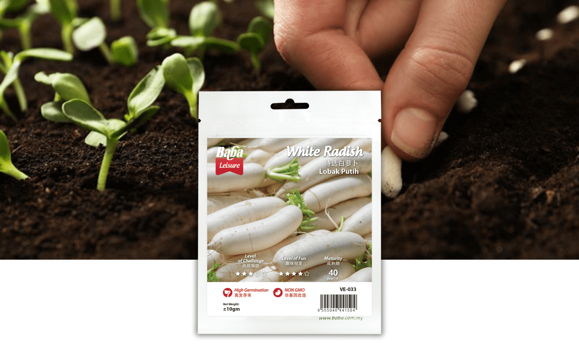 ♥♥ Extra tips: White Radish need more nutrient to fruiting, you may add in 25% Baba Compost-Based Fertilizer into soil. Baba Compost-Based Fertilizer help the plant to grow stronger.