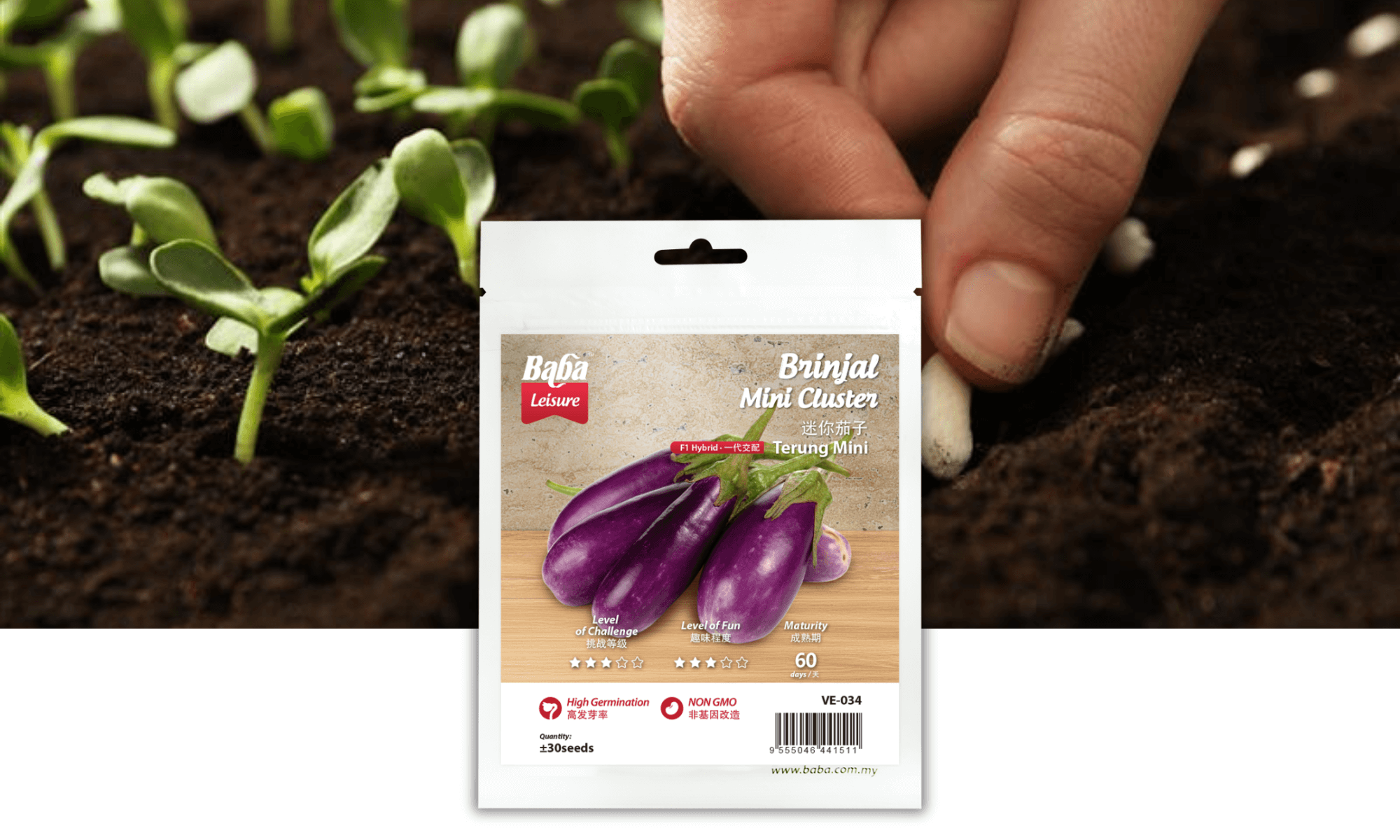 ♥♥ Extra tips: Brinjal Mini Cluster need more nutrient to fruiting, you may add in 25% Baba Compost-Based Fertilizer into soil. Baba Compost-Based Fertilizer help the plant to grow stronger.a Compost-Based Fertilizer into soil. Baba Compost-Based Fertilizer help the plant to grow stronger.