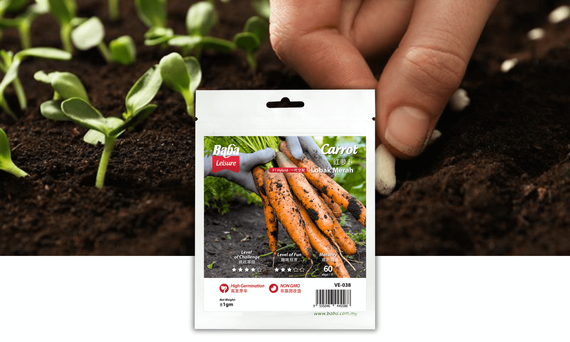 ♥♥ Extra tips: Carrot need more nutrient to fruiting, you may add in 25% Baba Compost-Based Fertilizer into soil. Baba Compost-Based Fertilizer help the plant to grow stronger.