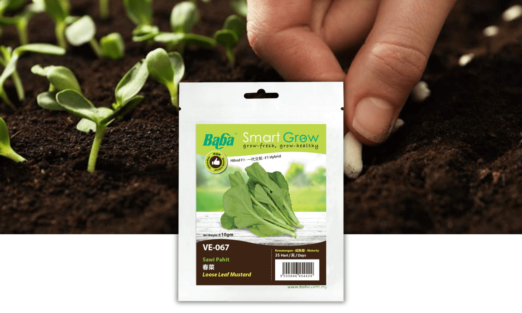 Prepare Baba seedling soil and seedling pots. Fill up the seedling pots with Baba seedling soil, use finger gently make a small hole, put in 2-3 seeds and cover with a thin layer of soil.