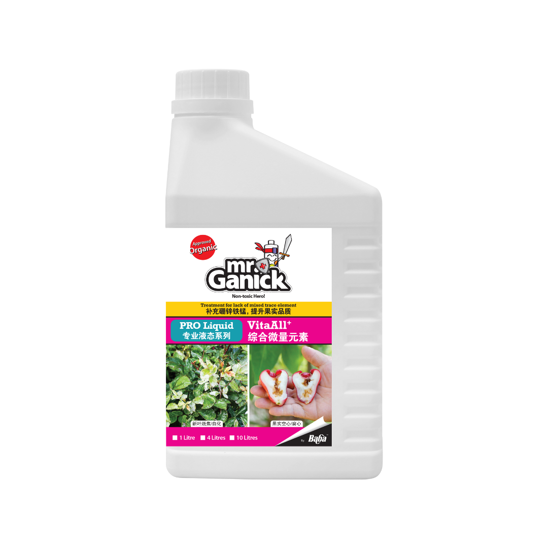 - Foliar Spray: Mix 20L water+ 40ml Mr Ganick CalMagBo+ + 40ml Mr Ganick VitaAll+ + 40ml Mr Ganick Organic K+. Spray evenly on the leaves every 7–10 days, for 3–4 consecutive rounds. Once the tree shows visible improvement, switch to spraying every 10–14 days for maintenance.